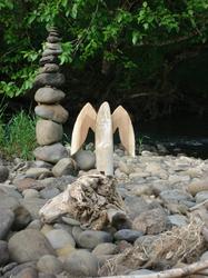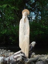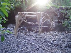 "Thunder On The Prairie" was done with the help of some Prairie High School students, Anna Gushtyuk was one of the more committed students. It is my first horse and is life size. It escaped out of the Prairie High School library and found its way to the river, with the help of the art teacher and accomplished artist himself, Kris Chrisopulos. Jeanne Charles, another art teacher and accomplished artist, asked for driftwood because they were going to do driftwood horses. I had Debra Butterfield's horses by the PDX airport in mind so I gathered a boat full of pieces. When I presented the truck load full of large pieces of driftwood I was told that the horses she had in mind were only going to be about a foot in height. She said I could build a life sized horse and I grabbed a few of her top students and we began. By watching this horse create itself I was so moved, the whole process resonated with me and my muse was satisfied, this is what it wanted me to do, this is what I do. Here's to the lack of communication ... and they say it's the answer to the problem.