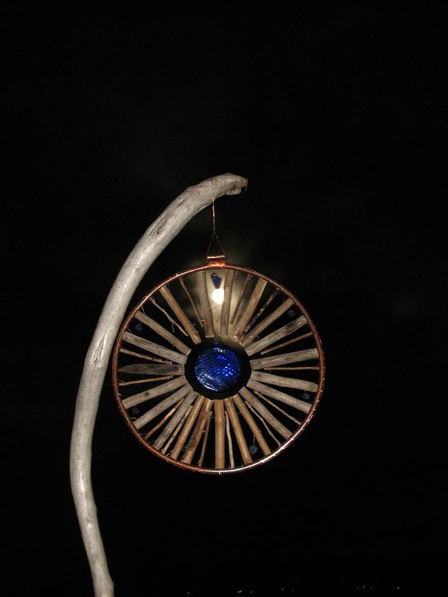 "Last First" is a piece I completed March, 2010. I've dedicated this to a woman I respect and love dearly. It was fun combining the copper and the driftwood. I will be making another piece using copper and driftwood soon. This piece is about 2 feet high and 2 feet long. The base, about 8 inches wide, is driftwood that was rubbed with a deer antler to bring out a shine to the wood.